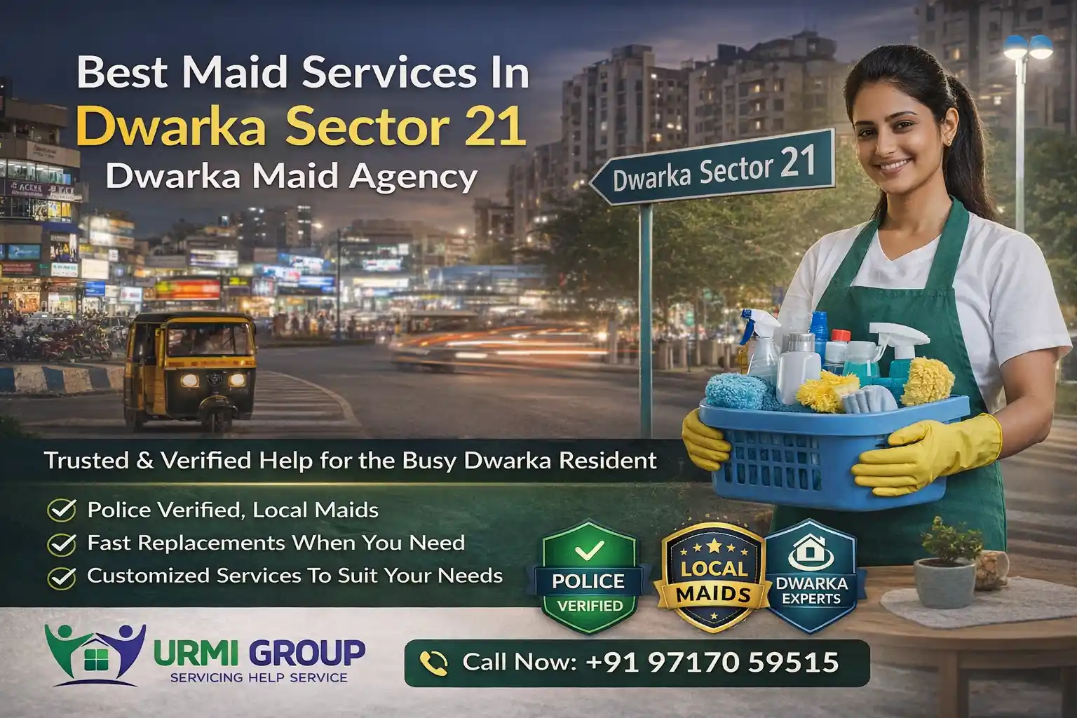 That’s where we step in. At Urmi Group, we provide reliable maid services in Dwarka Sector 21 with verified, local helpers. Whether you need quick replacements or customised help, our team knows the neighbourhood and your needs.